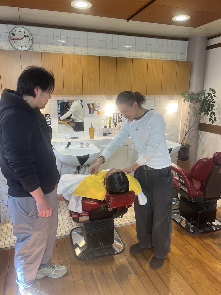 休憩時間にはパーマの練習や顔そりなどをスタイリストの皆さんに教わりながら楽しく過ごすことが出来ました!!